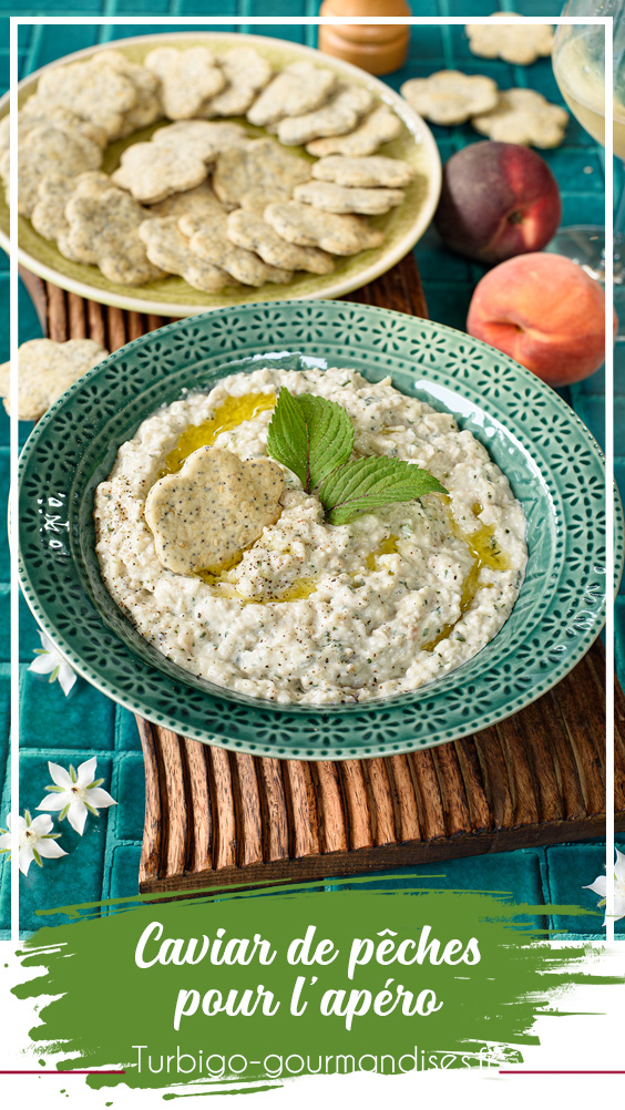 Vous connaissez probablement le caviar d’aubergines que l’on sert à l’apéritif. Je vous propose aujourd’hui une version bien différente, avec un caviar de pêches. C’est frais et inattendu.