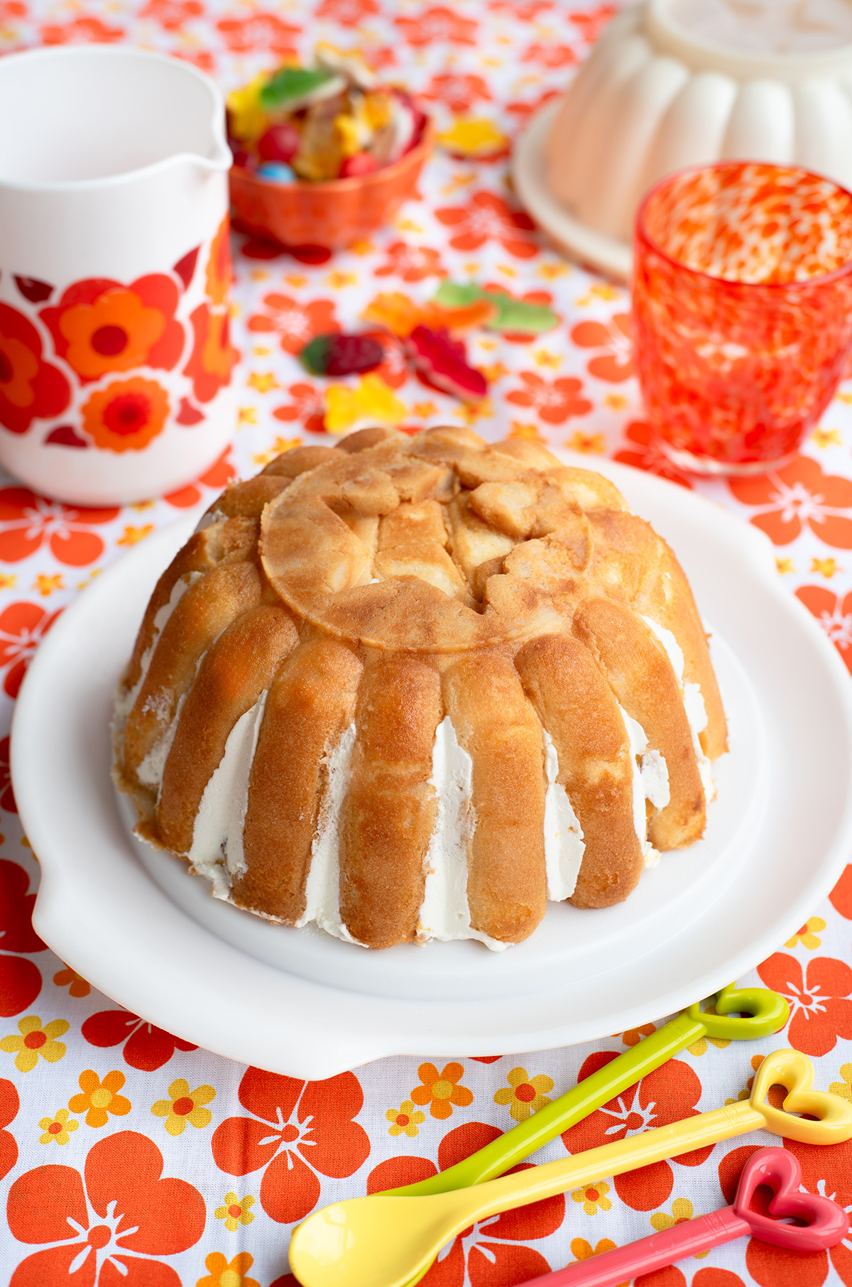 C’est vraiment une recette très simple mais elle fontionne à merveille. En règle générale, j’utilise plutôt des biscuits à la cuillère que des boudoirs quand je réalise des charlottes. En effet, les boudoirs sont plus secs et donc moins souples pour épouser les parois du moule. Pour autant, dans celle-ci je continue à utiliser des boudoirs, ceux de la marque Brossard, les mêmes que quand j’étais enfant… J’utilise toujours également mon moule à charlotte Tupperware – un collector, je crois !