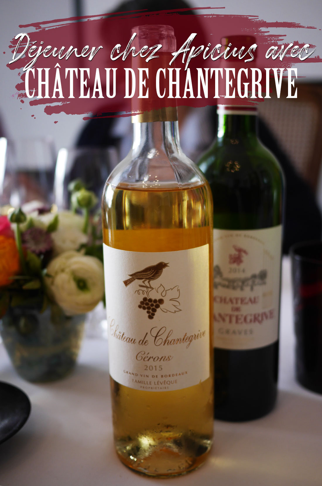 Marie-Hélène Levêque, propriétaire du Château Chantegrive nous recevait dernièrement au restaurant Apicius en compagnie de Bernard Audoy, son ami propriétaire du Château Cos Labory, dont j’ai déjà eu l’occasion de vous parler.